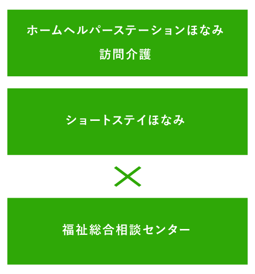 障碍をもっても、認知症になっても自宅で暮らし続けることを支援するために、訪問介護 (ホームヘルパーステーションほなみ)と定期巡回・随時対応型訪問介護看護(安心サポートセンターほなみ) を併設し、地域ケアを支えます。