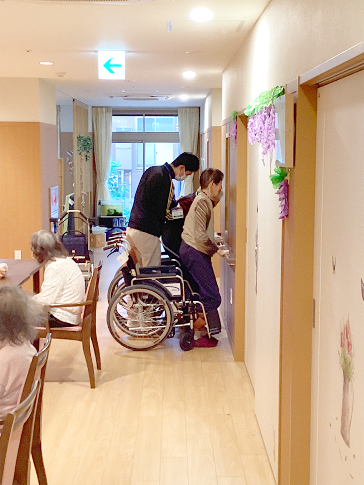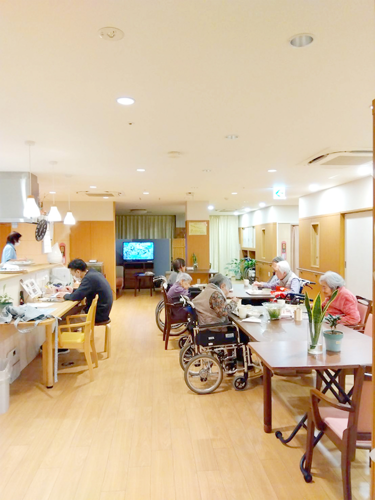パーソナルスペース・プライバシーが守られ、部屋から出るとホールで交流ができ孤独感が和らぐ家庭的な雰囲気です。