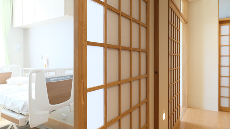 多床室では、4人部屋でありながら壁で仕切られており、費用負担が少ないままプライバシーに配慮された空間でお過ごしいただけます。