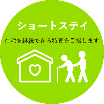 施設に併設されたショートステイ(10床)の 利用を通じて在宅での暮らしを支えます。